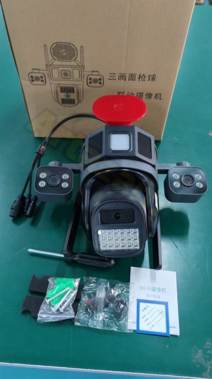 دوربین سیمکارتی آژیر دار ۳ لنز همزمان چرخشی نسخه اروپایی با چراغ پلیسی